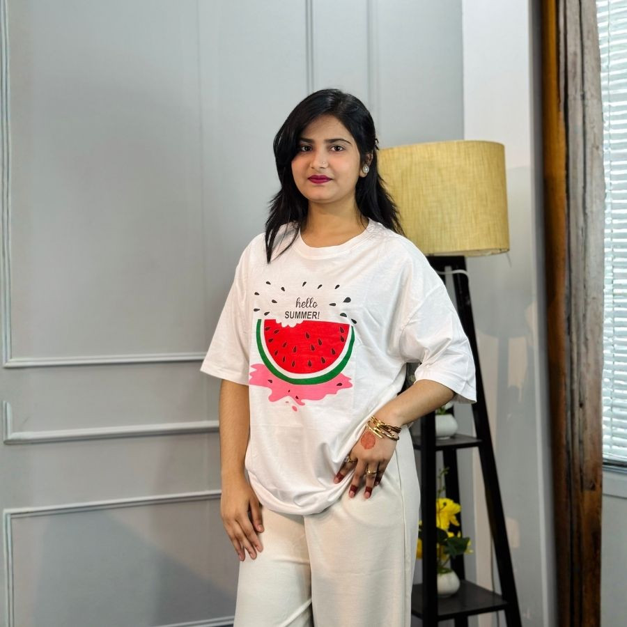 Ladies Drop Shoulder (Watermelon White)