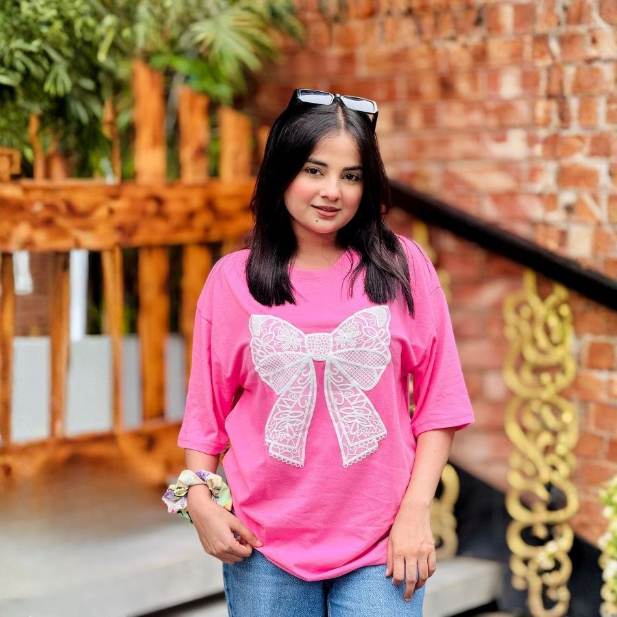 Ladies Drop Shoulder (Bow Pink)