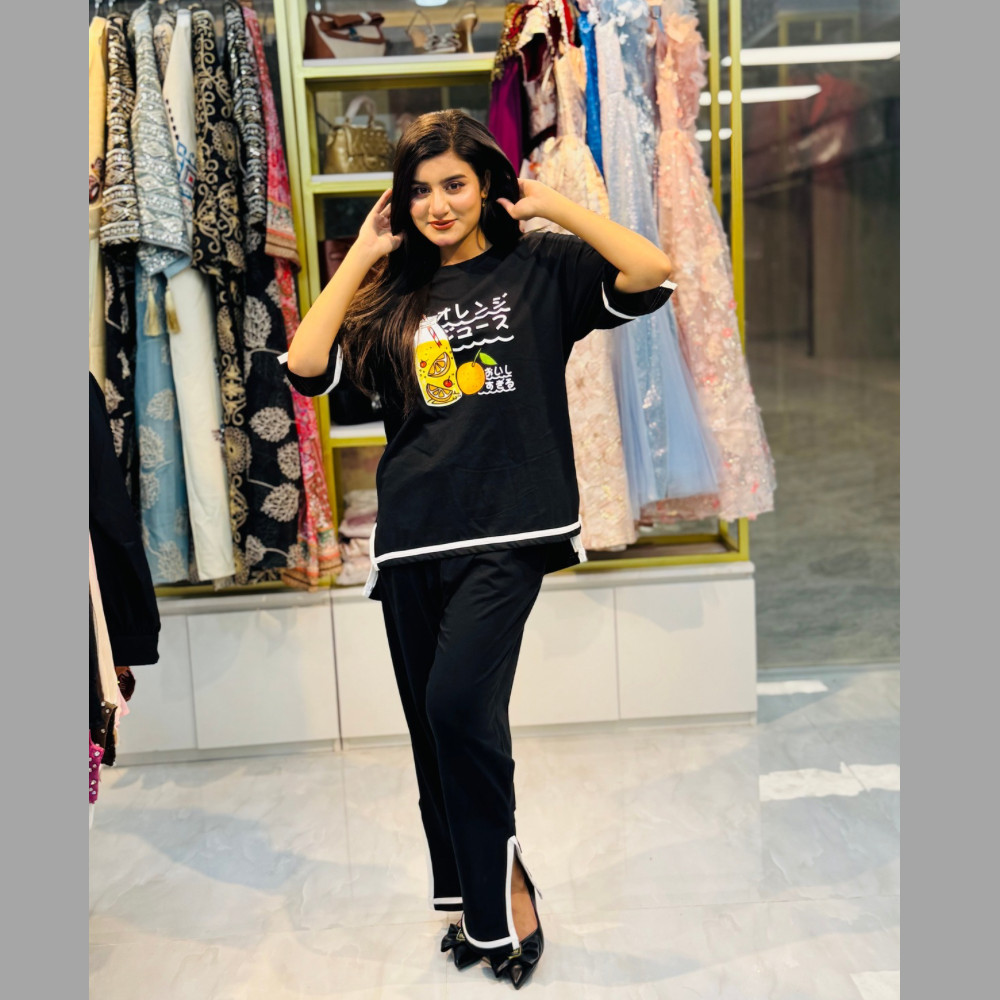 Side Cutting Co-Ord Set (Orange Juice Black)
